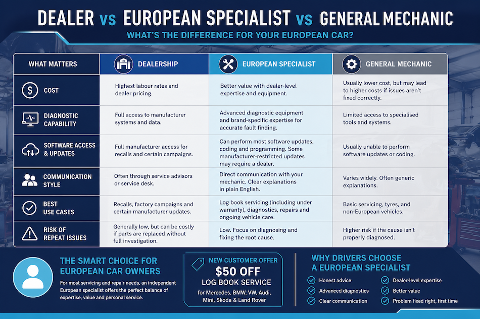 Choosing where to service your European car in Brisbane isn’t just about price, it’s about trust, expertise, and getting the problem fixed properly the first time.
